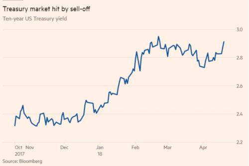 根据金融时报数据,美国国债收益率在今年1月到4月间大幅上升,反映出市场抛售压力使得美国国债价格下跌。