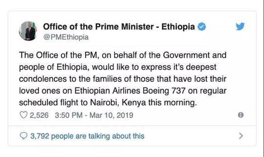 一是此次空难的最早一条消息是由埃塞总理府办公室在社交媒体推特(Twitter)上对外公布的,而并非空管部门或是埃塞航空。