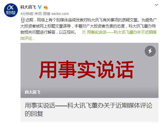 被曝“AI换地”股价大跌,科大讯飞:没有一分钱收入来自房地产
